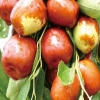 金圓酥棗:9月中旬成熟,平均單果重23克,大果重40克,果實(shí)橢圓形,成熟果皮淡紅色,果肉淡綠色,肉厚可食率達(dá)94%,細(xì)嫩多汁味甜,鮮食棗含糖量36%,品質(zhì)上,白熟期即可上市,易鮮食坐果率高,豐產(chǎn),早果